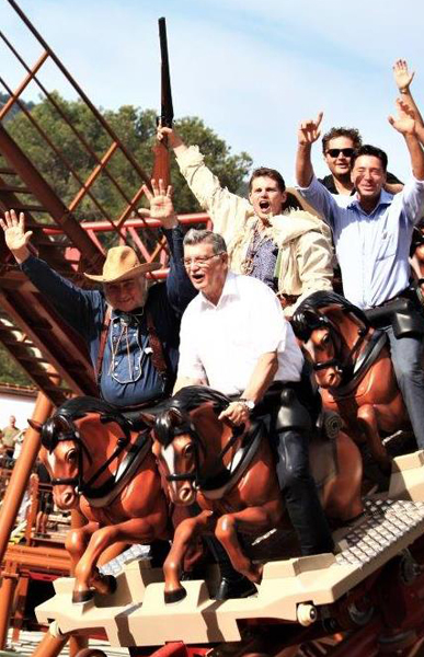 In an attractive route with approx. 500 m track length and a height of max. 25 m, 2 covered wagons with 6 horses each at a speed of max. 65 km/h are on the trail to conquer Wild West.