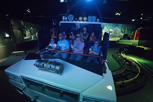 The ride can be realized in various track layouts adapting to the customer’s requirements. ZIERER offers 3 different layout models (S, M and L) with a total of 6 exciting stories which all were newly developed. The different models and stories can be used as starting points for discussions regarding technical realization and budgets. They are variable and interchangeable. The vehicles of the Advanced Dark Ride are approx. 3.5 m / 11.5 ft. long and 2.5 m / 8.2 ft. wide. Each vehicle has 2 rows of seats for 4 persons each.
