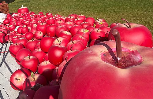 Besucher entdecken hier liebevolle Details rund um Äpfel und die elsässische Natur.