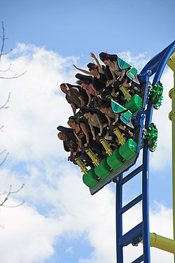 Damit die Fahrt trotz schweißtreibendem Tempo komfortabel bleibt, sind die Sitze ergonomisch geformt und gepolstert. Ein Kettenlift befördert die Fahrgäste 30 m in insgesamt drei Fahrzeugen mit je zwei Viersitzer-Reihen steil bergauf, bevor es dann mit bis zu 85 km/h ungebremst bergab geht. Den freien Fall gibt es hier sozusagen gratis obendrauf.